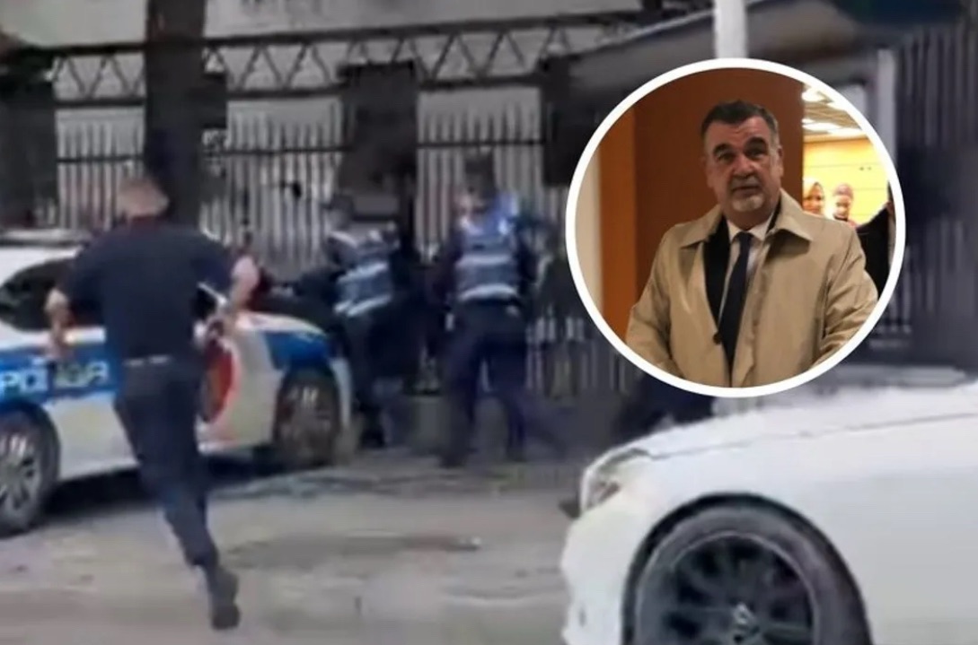 Në një skenë që duket më shumë si sketch humoristik sesa si realitet tragjik i një shteti funksional, Elvis Shkambi, pas ekzekutimit të gjyqtarit Astrit Kalaja brenda sallës së gjykatës, del i qetë në oborr dhe pret policinë me durim dhe edukatë, pa asnjë stres.